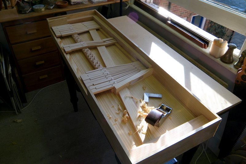 Here are a few pictures taken in my workshop during the early stages of building the instrument.