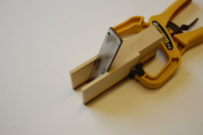 Using the blade to check that the middle layer has been planed to the right thickness – just a tad wider than the blade.