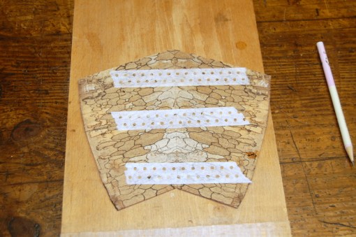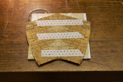 The point of the paper and the hot hide glue is that, after it has been assembled, the rosette is easy to detach from the MDF base. In another post, I’ll show the next stages of the process.
