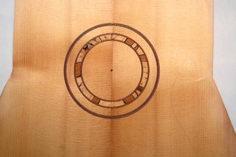 I also felt free to to inlay spalted beech for the rosette instead of the mother of pearl set in mastic of the original.