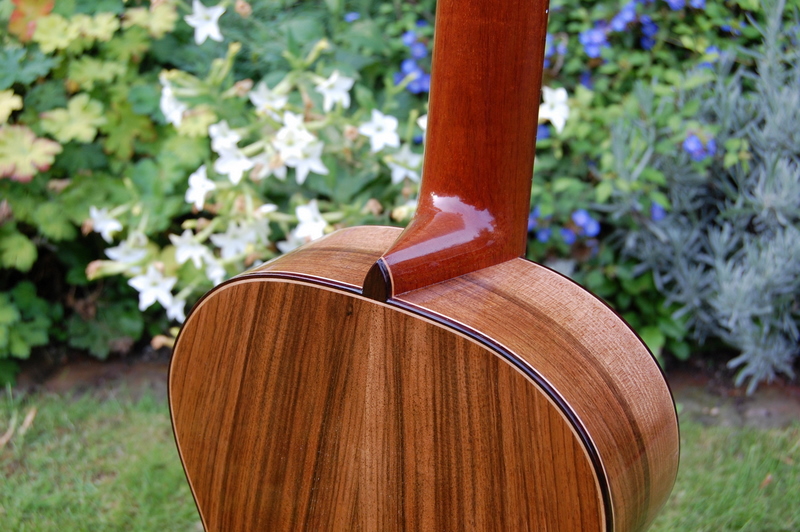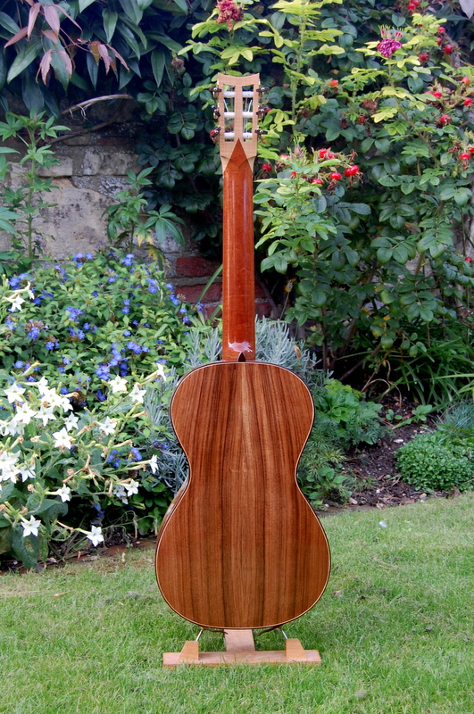 Here are 3 photographs of the completed guitar. The body length is 450mm, width across lower bout 290mm and scale length 630mm.