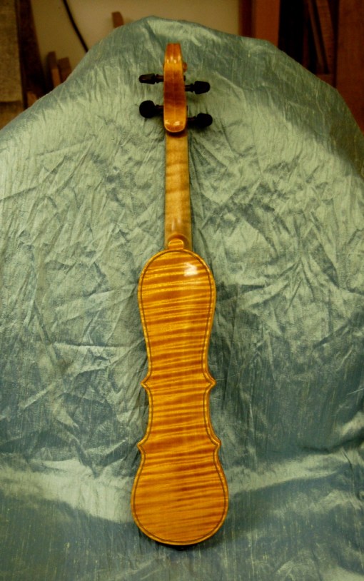 A few days ago, my friend Michael Lavelle, surgeon, cellist and luthier, dropped in to return a plane that I had lent him and to try out the cello that I have been writing about recently. He brought with him a beautiful pochette, a copy of the famous Clapisson pochette made by Antonio Stradivari in 1717, that he had completed last year. Mike’s instrument has an owl’s face instead of a scroll.