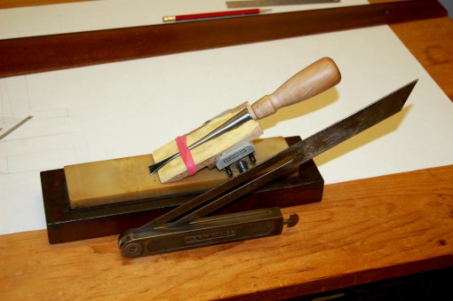 A pair of chisels reground with left and right skewed edges is almost essential for cleaning out the sockets of lap dovetails. These chisels are useful for other tasks as well – tidying up the inside of the pegbox of a violin or cello, for example. I’ve got several pairs in different sizes and, although I don’t use them everyday, there are jobs where no other tool will do.