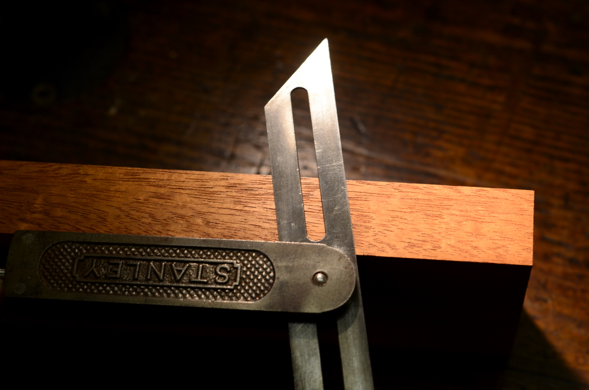 I mark the starting point of the cuts for the sides of the V on the endgrain…