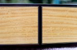 Although many people prefer guitars made of dark coloured wood, lighter colours can make good looking instruments too. The back and ribs of this one are in satinwood (Chloroxylon swietenia), a dense hardwood from Sri Lanka rarely available nowadays but which in Georgian times was widely used as a veneer in furniture making. It’s hard, brittle and difficult to work with hand tools but it bends fairly easily and, because it doesn’t contain large pores, finishes well with French polish. As its name suggests, satinwood is strongly reflective and when polished takes on a shimmering, almost iridescent, quality (sometimes called chatoyance) that’s impossible to capture in a photograph.