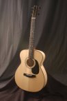 OO size, X-braced, steel-string guitar with 12 frets to the body, made in English walnut and Sitka spruce at the end of 2014.