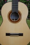 A smaller guitar, based on an instrument by Herman Hauser, with a scale length of 630mm. The soundboard is spruce and the back and ribs are of Madagascan rosewood (Dalbergia baronii). The bindings and bridge are of Rio rosewood and the rosette and headstock veneer are of English yew.