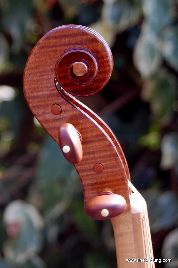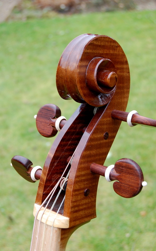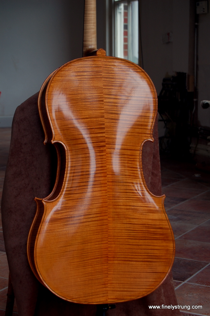 This cello, set up in the baroque manner with a short fingerboard, low bridge and gut strings, was completed at the beginning of 2009.