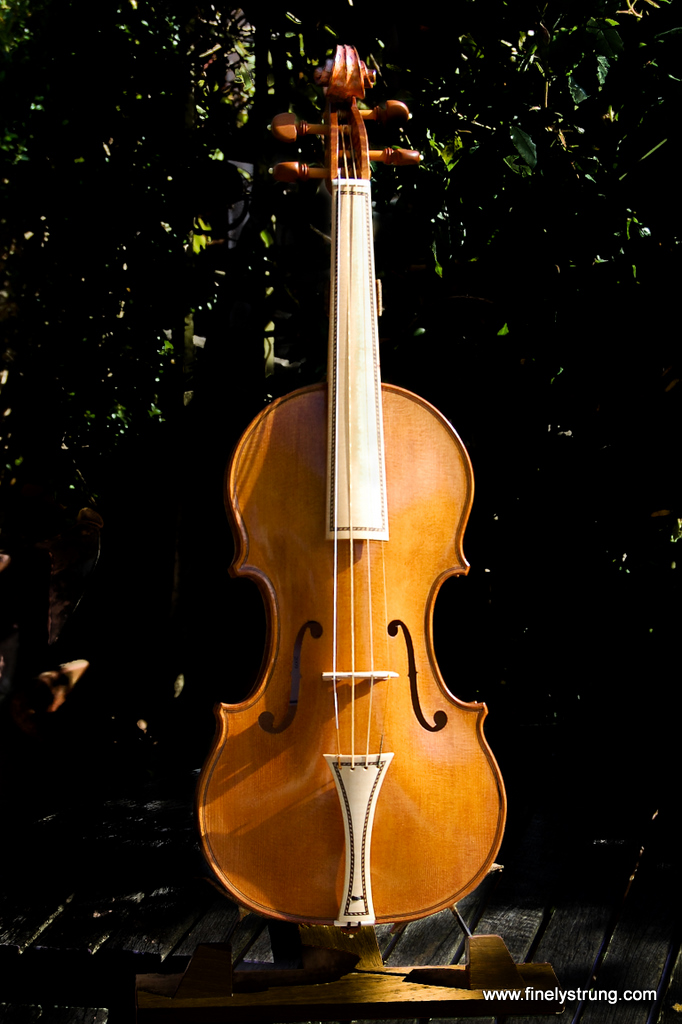 A copy of an instrument by Andrea Amati in 1564 for Charles IX of France, now in the Ashmolean Museum, Oxford. Made for Pamela Rosenberg, who is a member of the Tartini ensemble.
