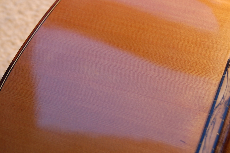 A while ago, I wrote about repairing the damaged soundboard of a cedar topped guitar. And I’ve recently had to deal with a similar problem, this time caused by the lid of the case falling on the guitar as it was being lifted out. The damage wasn’t structural but it did leave some conspicuous dents.